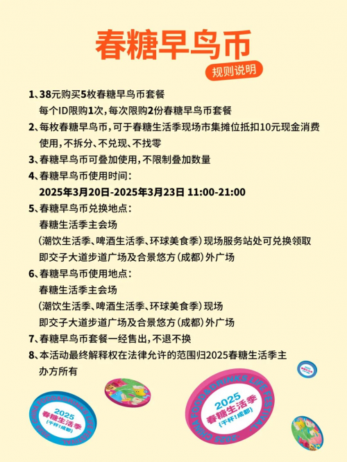 为给现场观众带来更便捷、实惠的消费体验,春糖生活季特此推出“春糖早鸟币”,并开启限量预售!