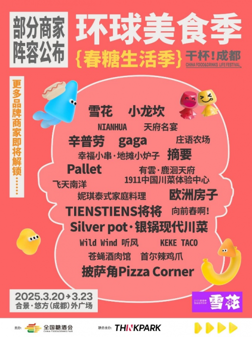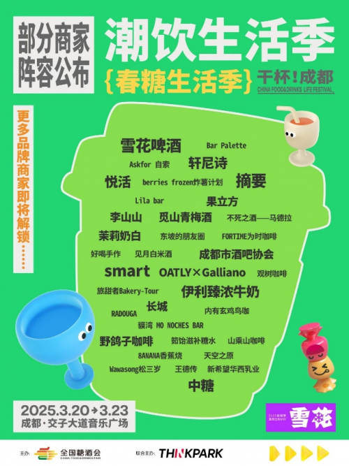 2025成都春糖生活季即将于3月20日正式开启!第112届全国糖酒会携手2025春糖季首席合作伙伴雪花啤酒,汇聚150+全球品牌,共同呈现三大主题生活季,于成都打造春糖生活新方式!